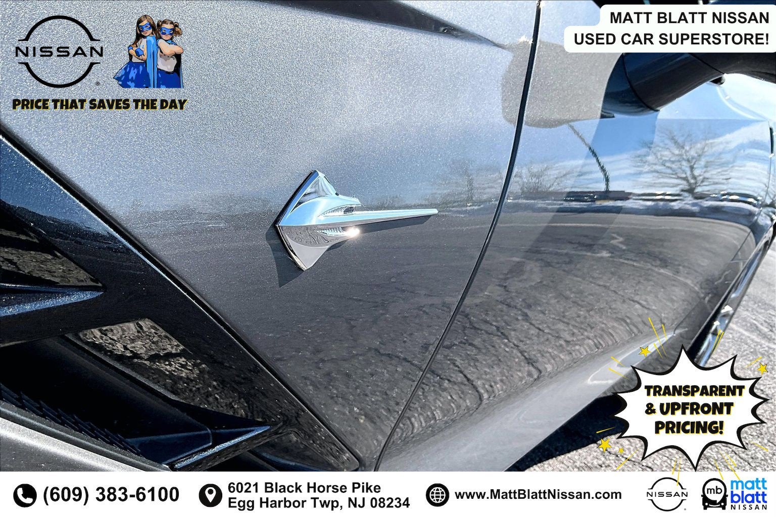 Matt Blatt has been serving New Jersey, Pennsylvania, Delaware, and New York for over 30 Years! Matt Blatt NISSAN is fully committed to maintaining a customer-first approach. Our team of professionals is dedicated to keeping the process quick and easy, putting YOU in control of the whole experience. We look forward to providing you with the finest vehicles and services! Buy with confidence knowing this vehicle has earned its place in our inventory by passing our rigorous multi-point inspection and reconditioning process by our 100% Certified Technicians and it is ready for many miles of reliability and comfort. TRANSPARENT & UPFRONT PRICING WITH NO HIDDEN FEES. We are constantly updating and strategically pricing our inventory to make sure you get a great price without having to be a great negotiator. Carfax is available free of charge on all of our vehicles.