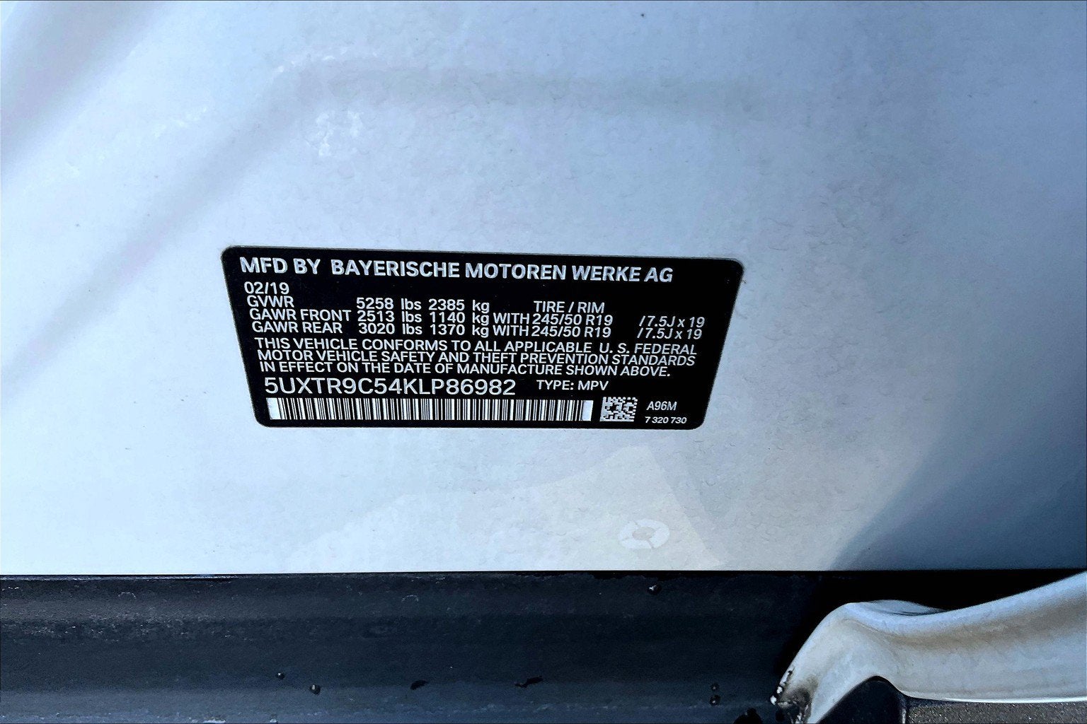 - Front Tire Size: P245/50HR19