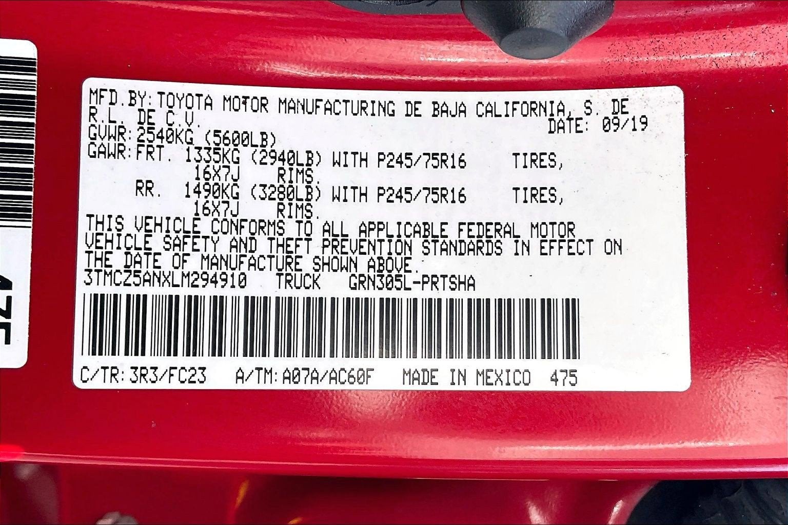 - Vehicle Name: Toyota Tacoma 4WD