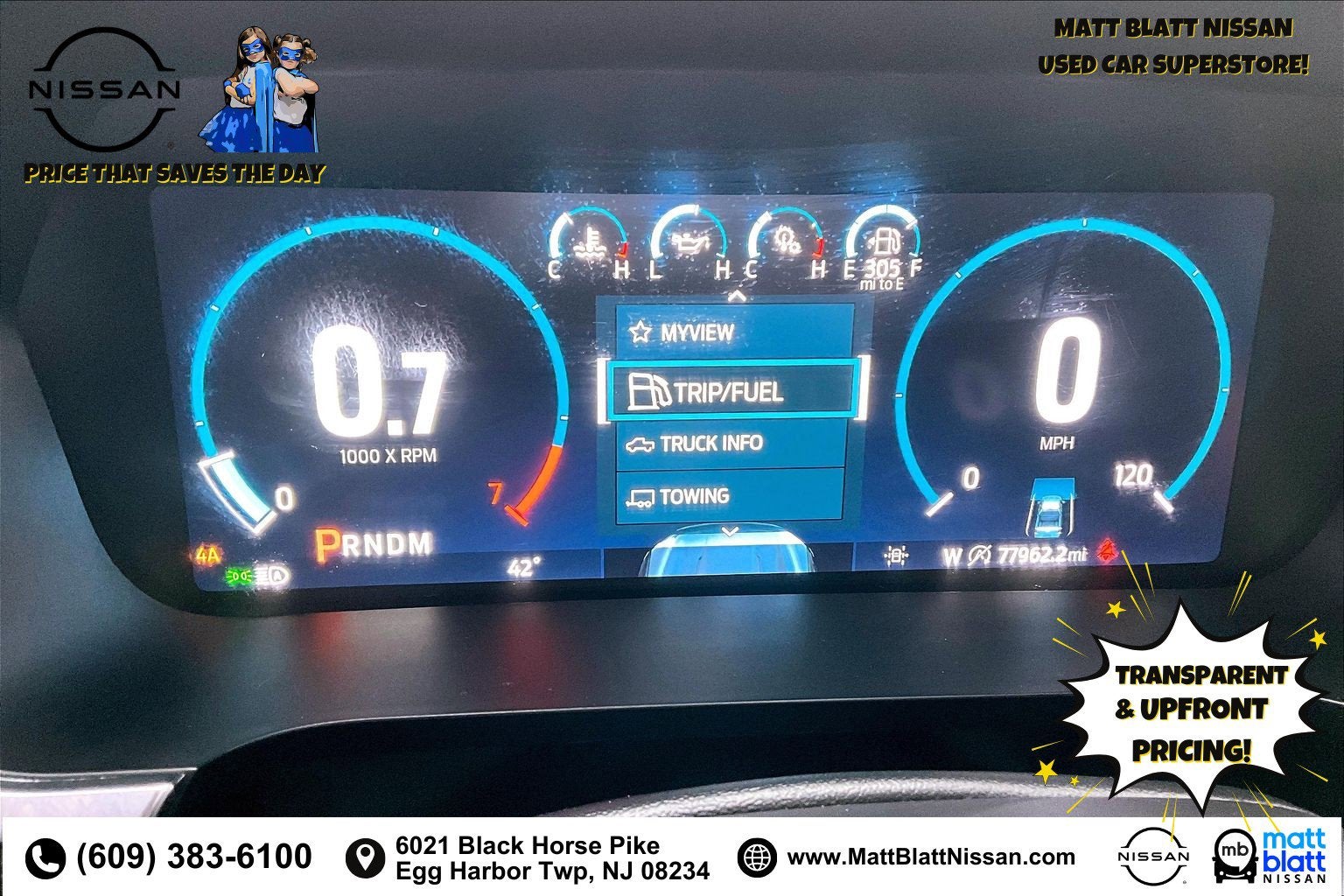 Matt Blatt has been serving New Jersey, Pennsylvania, Delaware, and New York for over 30 Years! Matt Blatt NISSAN is fully committed to maintaining a customer-first approach. Our team of professionals is dedicated to keeping the process quick and easy, putting YOU in control of the whole experience. We look forward to providing you with the finest vehicles and services! Buy with confidence knowing this vehicle has earned its place in our inventory by passing our rigorous multi-point inspection and reconditioning process by our 100% Certified Technicians and it is ready for many miles of reliability and comfort. TRANSPARENT & UPFRONT PRICING WITH NO HIDDEN FEES. We are constantly updating and strategically pricing our inventory to make sure you get a great price without having to be a great negotiator. Carfax is available free of charge on all of our vehicles.