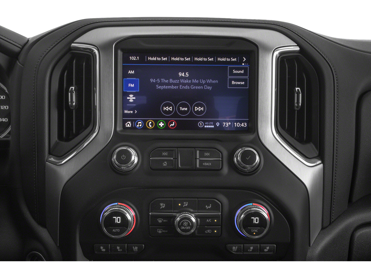 - Audio system, Premium GMC Infotainment System with 8" diagonal color touch-screen, includes multi-touch display, AM/FM stereo Bluetooth® streaming audio for music and most phones; featuring wireless Android Auto and Apple CarPlay capability for compatible phones, advanced voice recognition, in-vehicle apps, personalized profiles for infotainment and vehicle settings (Note: (PZ8) Hitch Guidance with hitch view is included with trim. Includes SiriusXM with 360L.)