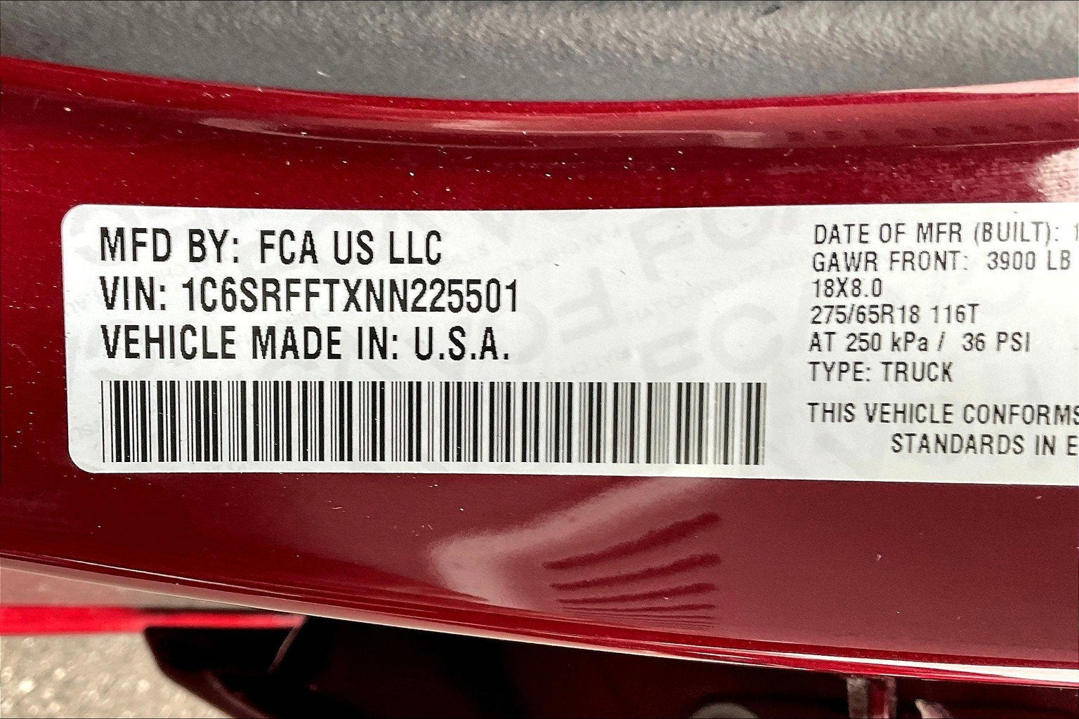 VIN: 1C6SRFFTXNN225501