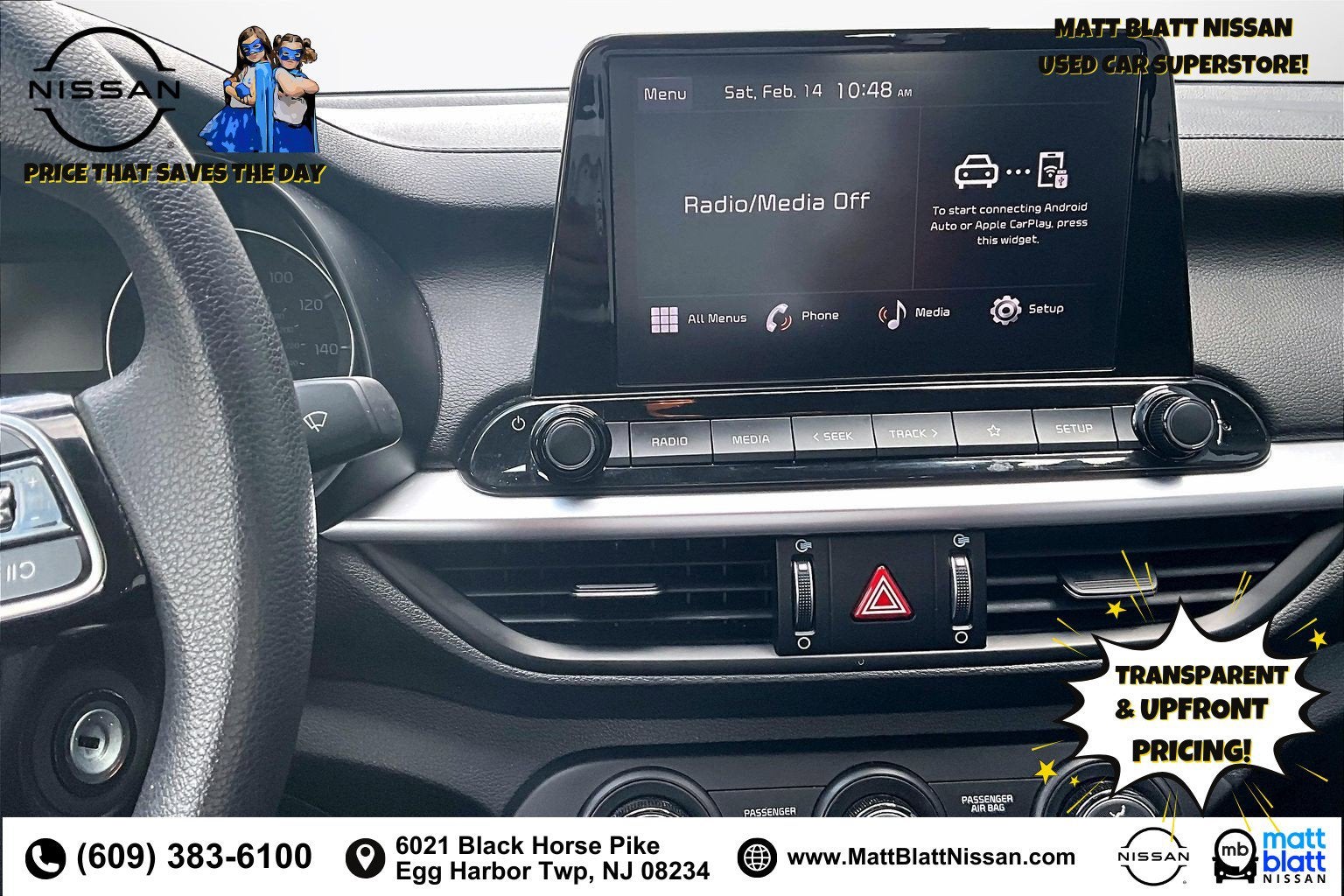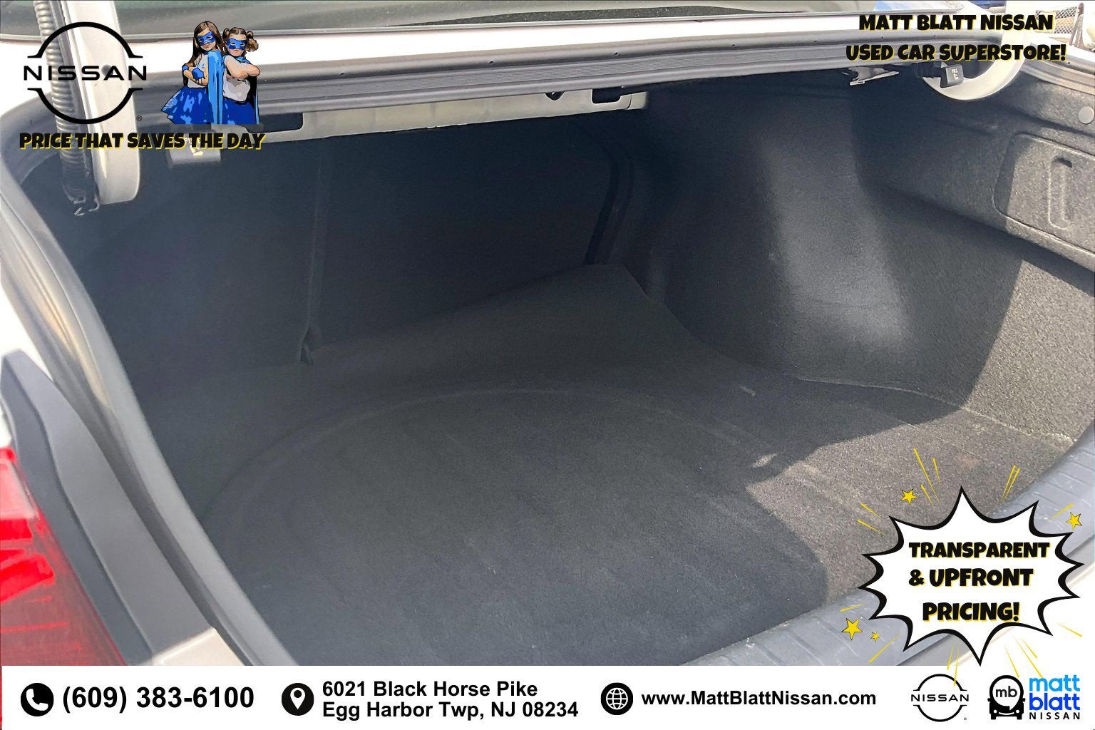 Matt Blatt has been serving New Jersey, Pennsylvania, Delaware, and New York for over 30 Years! Matt Blatt NISSAN is fully committed to maintaining a customer-first approach. Our team of professionals is dedicated to keeping the process quick and easy, putting YOU in control of the whole experience. We look forward to providing you with the finest vehicles and services! Buy with confidence knowing this vehicle has earned its place in our inventory by passing our rigorous multi-point inspection and reconditioning process by our 100% Certified Technicians and it is ready for many miles of reliability and comfort. TRANSPARENT & UPFRONT PRICING WITH NO HIDDEN FEES. We are constantly updating and strategically pricing our inventory to make sure you get a great price without having to be a great negotiator. Carfax is available free of charge on all of our vehicles.