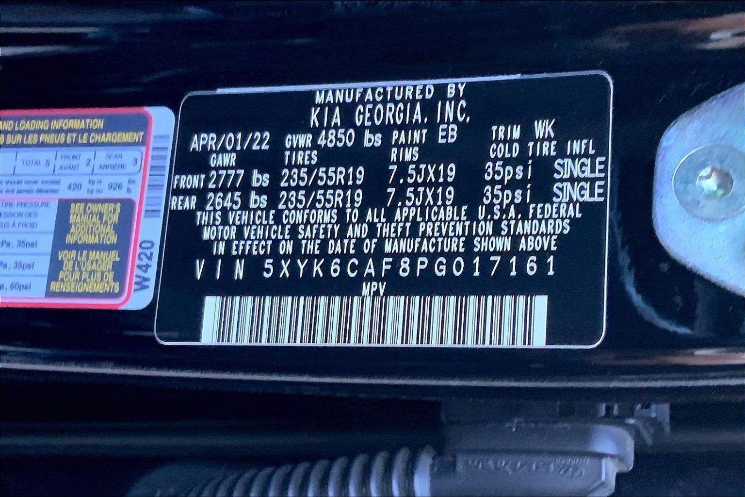 - Front Tire Size: P235/55HR19